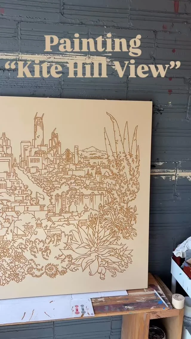 I am a line-drawer, street peddler, and muralist based in San Francisco. You can find me and my wares at many San Francisco festivals as well as on the corner of Valencia St. and 20th on some Saturday and Sunday afternoons. For my up-to-date location and schedule, see my posts below. For stores that carry my apparel, keep scrolling.